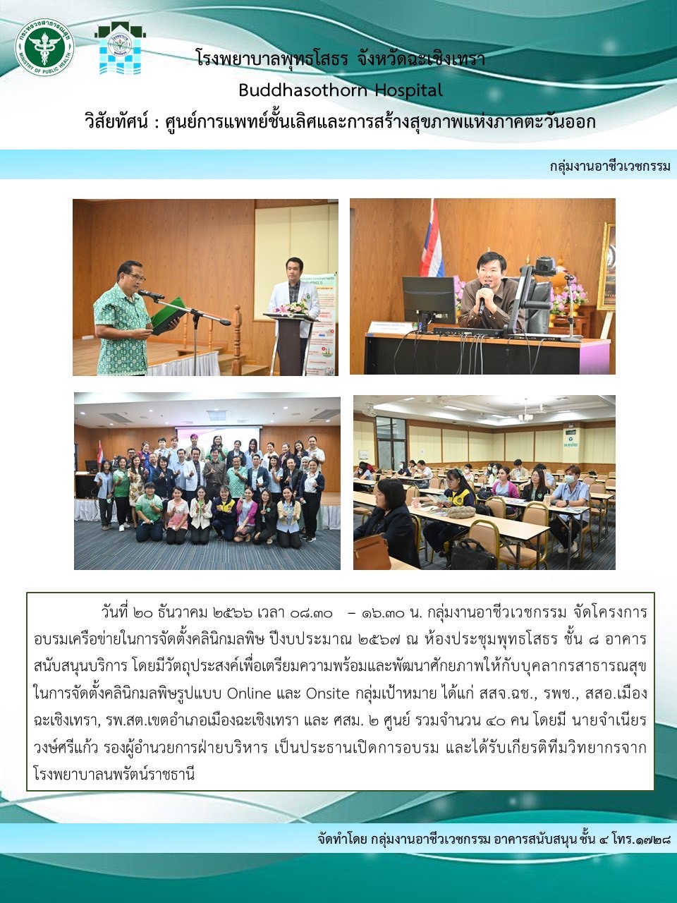 Copyright © กลุ่มศูนย์การแพทย์เฉพาะทางด้านอาชีวเวชศาสตร์ โรงพยาบาลนพรัตนราชธานี 2019